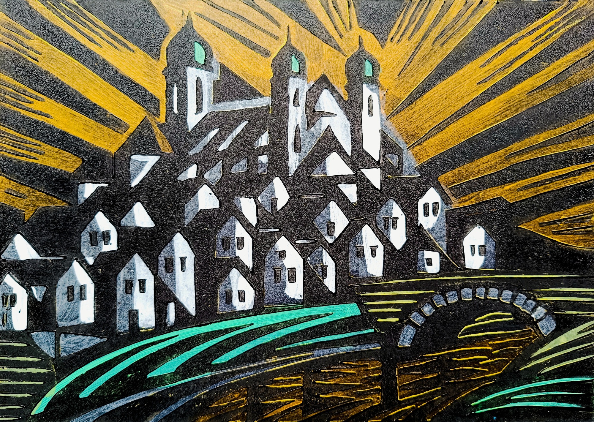Linoldruck (koloriert)