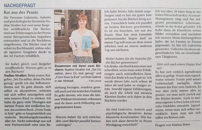 Am 01.03. ist das erste Buch von Nadine Straßer, der psychologischen und systemischen Beraterin, Kunsttherapeutin und zertifizierten MBSR Achtsamkeitstrainerin der Praxis Kopfblüte erschienen.