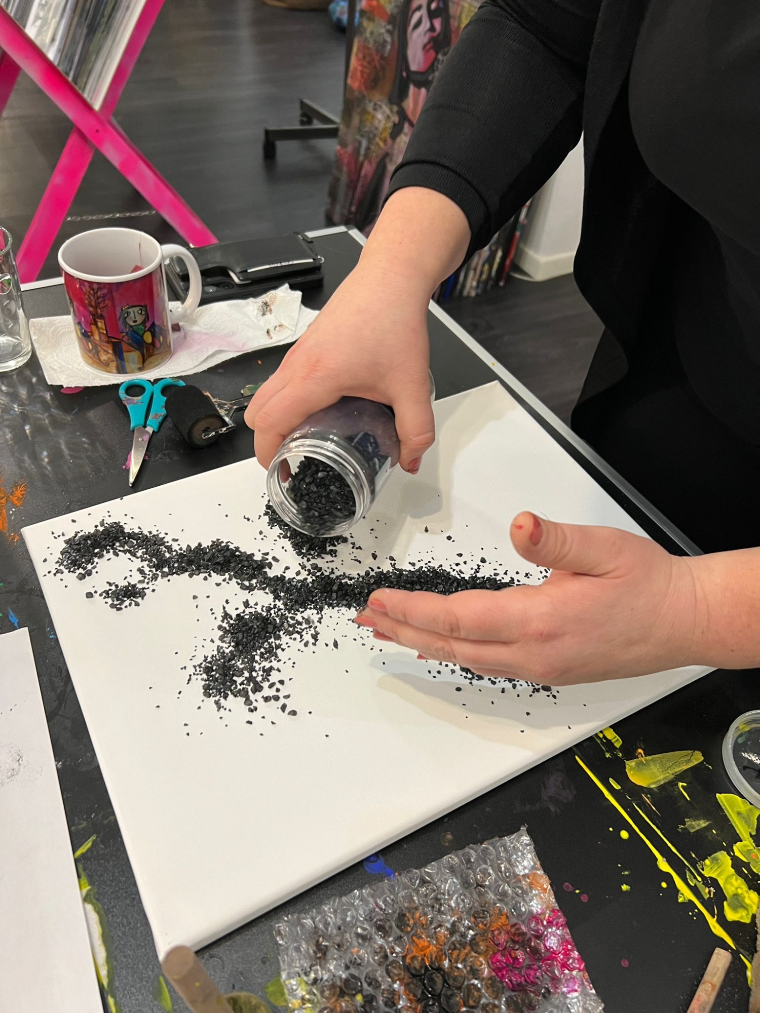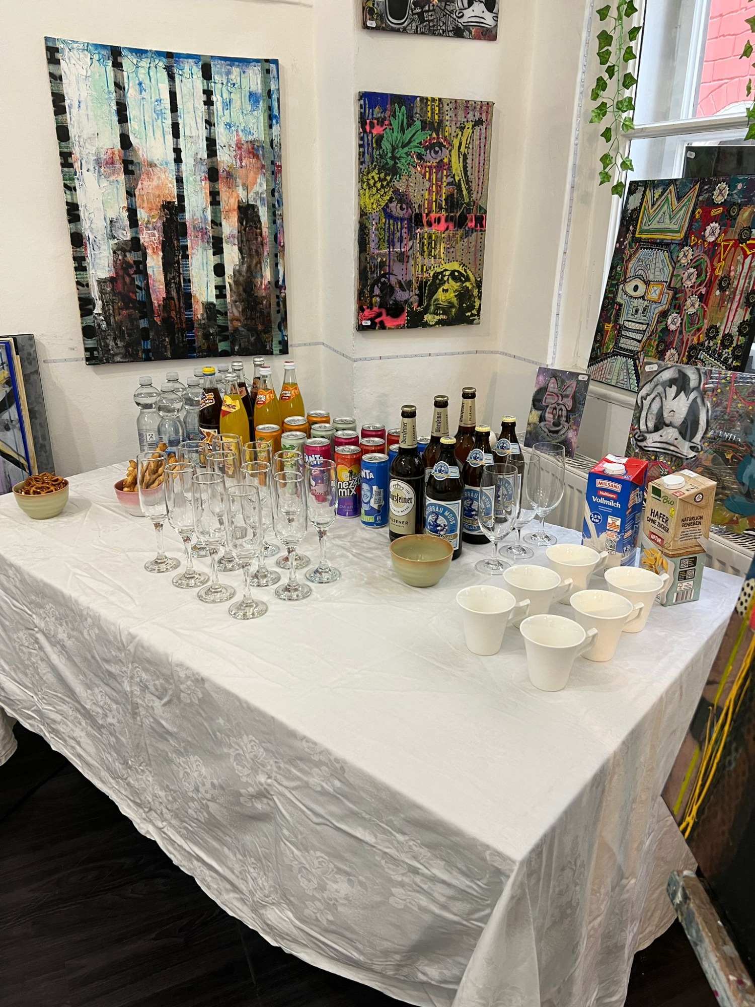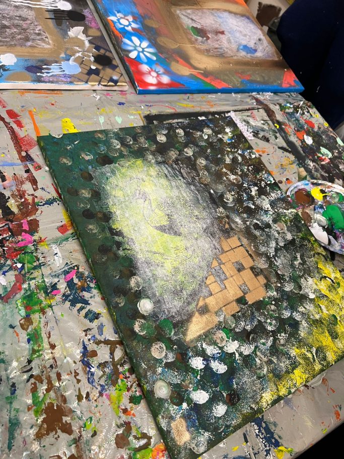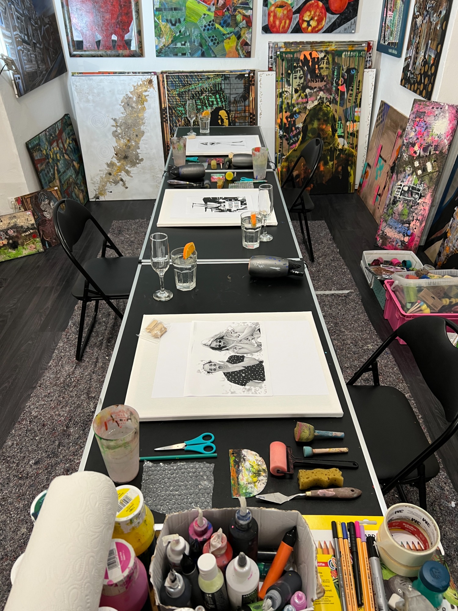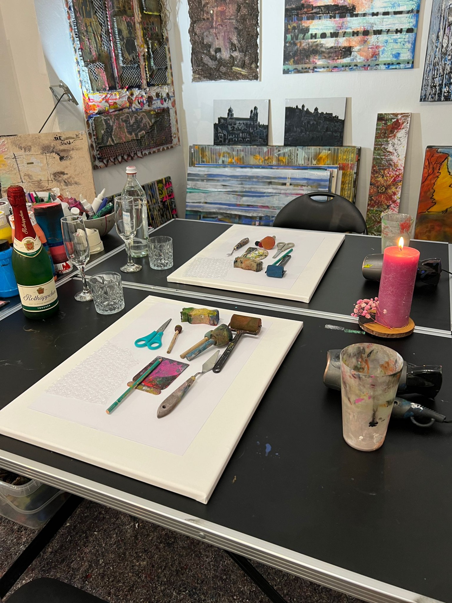 Alle Farben, Leinwände und Materialien stehen für euch bereit.