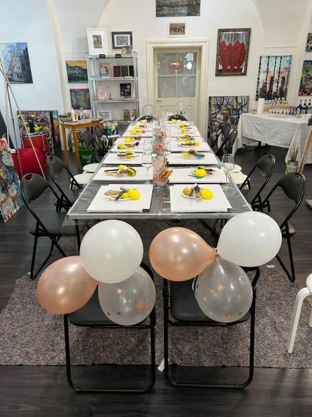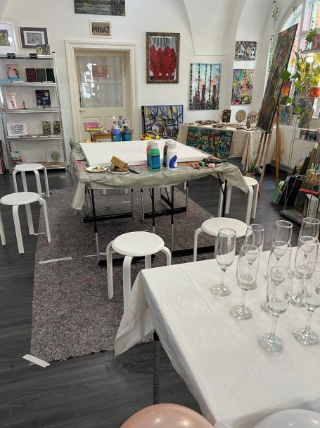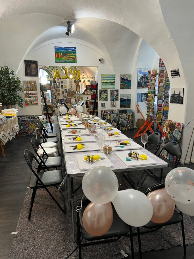 Im stimmungsvollen Ambiente der Kunstgalerie entstehen einzigartige Momente, in denen Kreativität und gemeinsames Erleben im Mittelpunkt stehen.