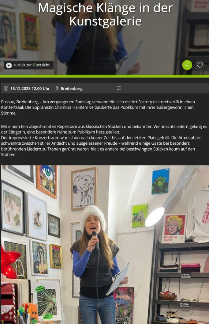 Als Geschäftsführerin der Art Factory ncstreetsart® in Passau gestaltet sie künstlerische Projekte, Workshops und Veröffentlichungen im Verlag ncstreetsart.